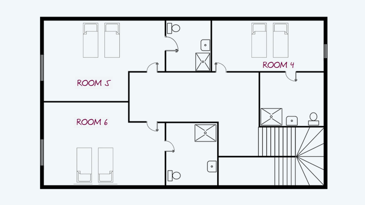 Sleeps 2. A larger twin room with ensuite shower room. Shower, WC and basin.